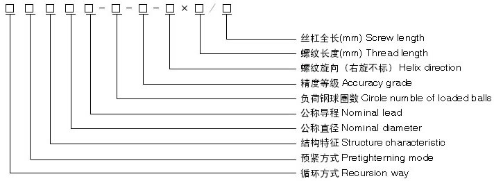 注:对公称直径小于14mm的微型丝杠副,在上述编号前加“V”。