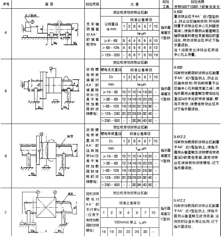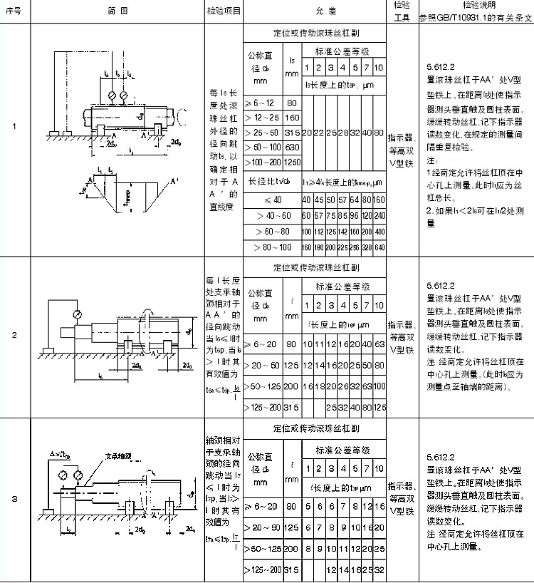 滚珠丝杠副安装基准面形状位置公差(摘自GB/T17587.3-1998)